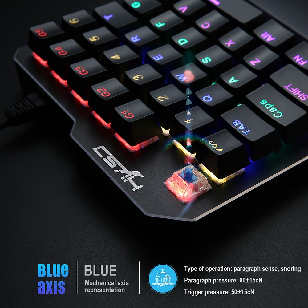 Features: 35 keysone-handed wired gamingkeyboard,mechanical touch feeling,games control for gaming. Ergonomic design,the wrist support relax the pressure of your hand and wrist,comfortable to use. Colorful RGB backlight effects bring you dazzling visual experience,enjoy gaming with
