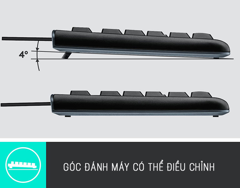 Một bàn phím nằm ngang trên bề mặt phẳng sẽ tạo cảm giác gõ khá mỏi cổ tay. Chính bởi vậy, một chân đế giúp nâng bàn phím lên một góc nghiêng đã được ra đời nhằm mang lại trải nghiệm gõ vô cùng thoải mái. Bạn có thể dễ dàng điều chỉnh độ nghiêng của bàn phím phù hợp với phần cổ tay của bạn. Thoải mái gõ trong thời gian dài mà không bị mỏi cổ tay.