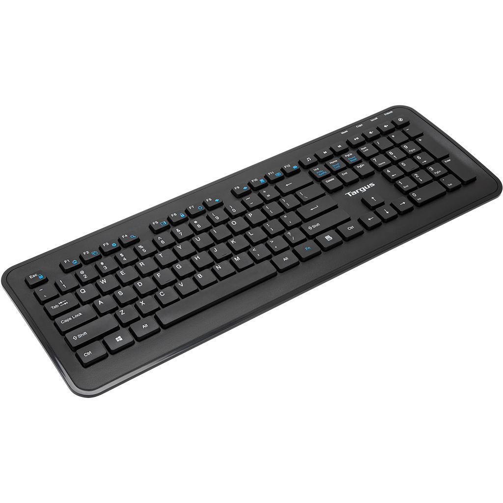 Bàn phím + chuột Targus KM610 kết nối USB không dây 2.4Ghz Bàn phím kích thước đầy đủ cho thao tác nhập liệu linh hoạt hơn Hành trình phím thấp, gõ nhạy, nhanh và hạn chế