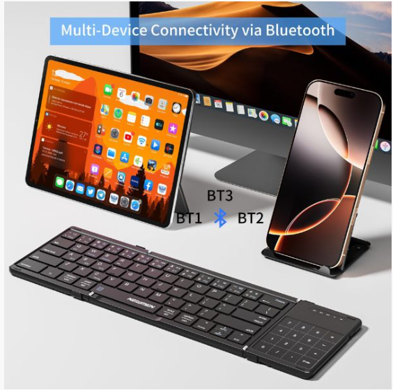 – Sự tiện lợi đỉnh cao trong tầm tay là sự kết hợp hoàn hảo giữa tính di động và hiệu suất làm việc. Sản phẩm được thiết kế gập gọn, dễ dàng mang theo mọi lúc, mọi nơi, phù hợp cho những người thường xuyên di chuyển. Với kết nối Bluetooth không dây ổn định, bàn phím giúp bạn làm việc hiệu quả trên nhiều thiết bị như laptop, máy tính bảng hay điện thoại thông minh. Đặc biệt, bàn phím còn được tích hợp touchpad tiện lợi, giúp thao tác nhanh chóng mà không cần đến chuột rời.