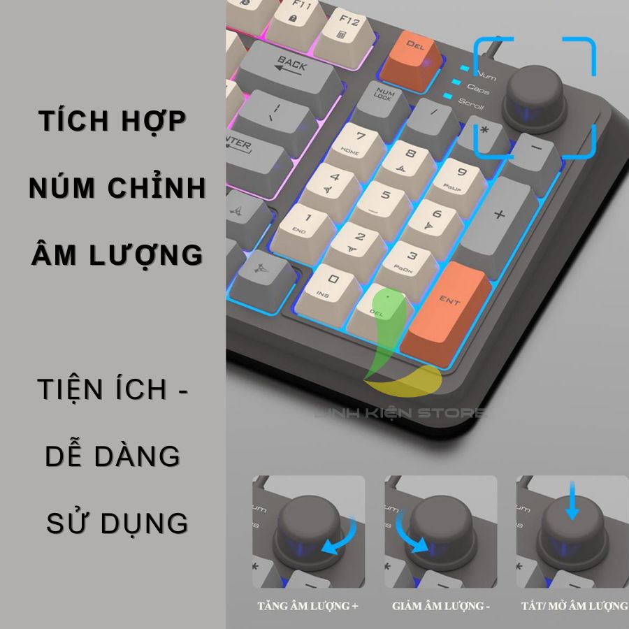 Combo phím chuột có dây XUNFOX K820 thiết kế 94 phím có nút vặn âm lượng tiện lợi kèm theo đèn led