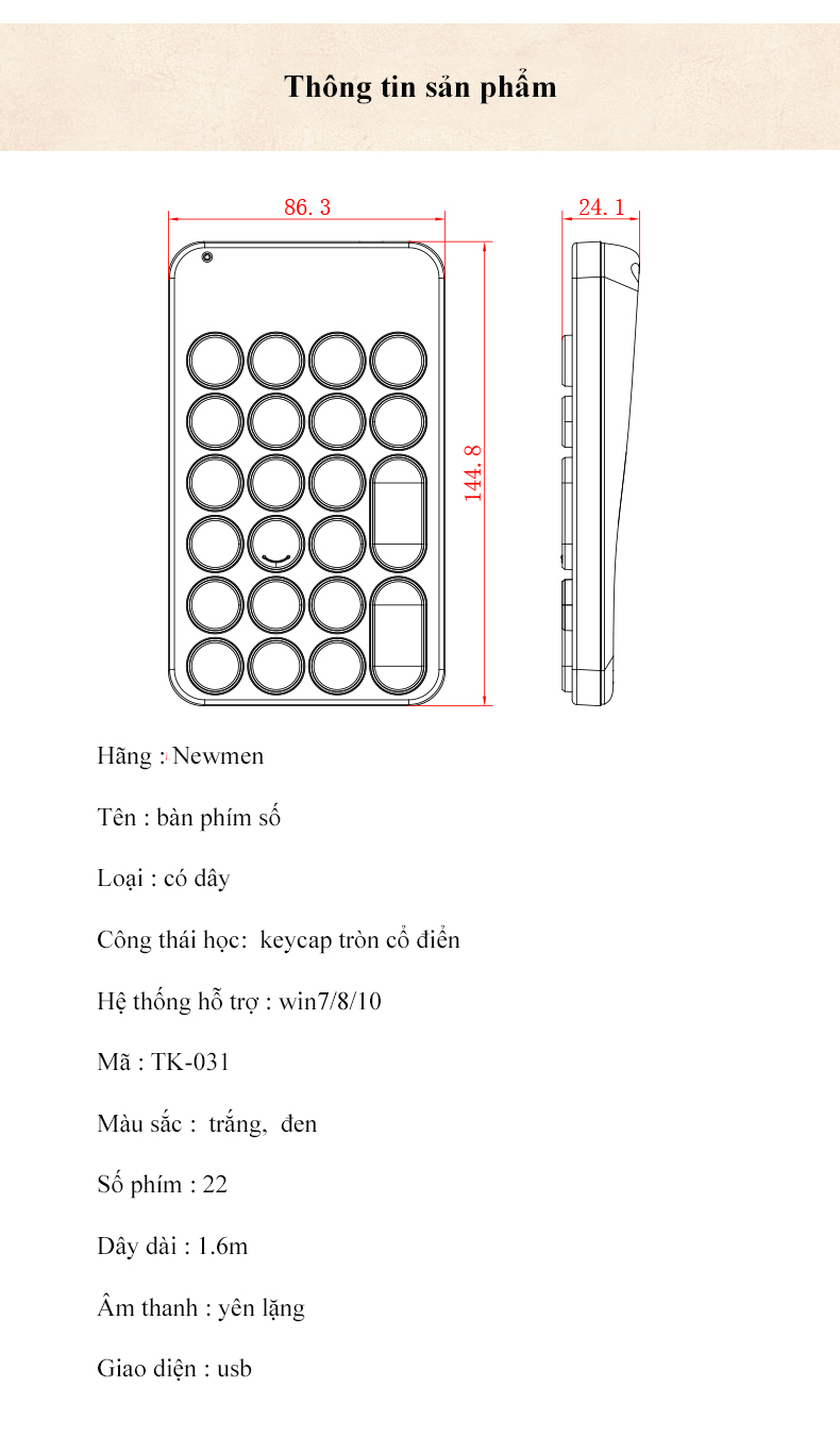 ✨BÀN PHÍM SỐ NEWMEN TK031 - Hàng Chính Hãng