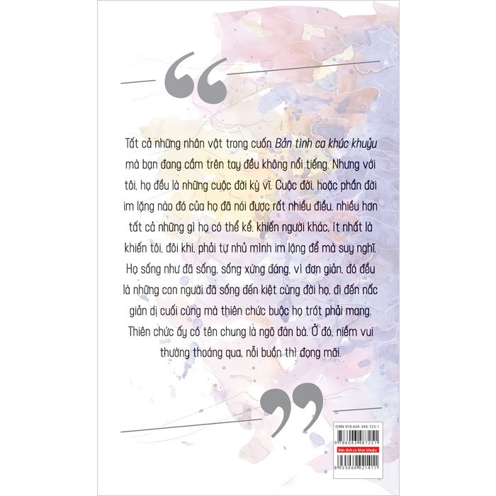Nhà xuất bản Phụ nữ Việt Nam xin trân trọng giới thiệu quý độc giả cuốn sách “Bản tình ca khúc khuỷu”.