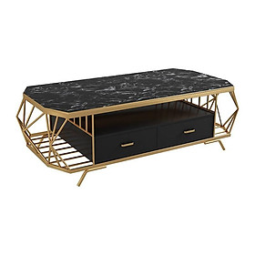 Bàn trà Camillo đen được làm từ chất liệu chính là sắt sơn tĩnh điện bền đẹp, màu sắc đa dạng. Mặt bàn có thể thay đổi chất liệu như gỗ, đá nhân tạo hoặc đá tự nhiên. Hộc kéo gỗ MDF sơn PU chống thấm, chống trầy, tùy chọn các màu trắng, màu đen tương ứng màu mặt bàn. Kích thước sản phẩm là 1200x600x450 mm, có thể thay đổi theo nhu cầu.