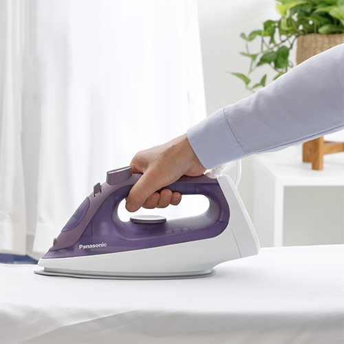 Màu sắc thời trang có màu tím thanh lịch, mặt đế bàn ủi phủ Titanium chống dính dày bền. Bàn ủi lướt êm ái trên mọi chất liệu vải, dễ làm sạch. Rãnh cúc và