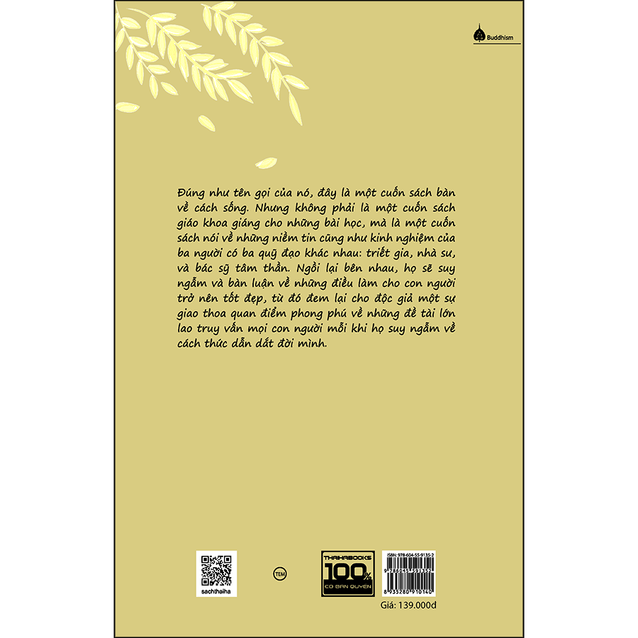 Chúng tôi thấy dường như ba quỹ đạo của chúng tôi, tuy khác nhau là vậy – triết gia, thầy tu, bác sĩ tâm thần – nhưng có lẽ sẽ cho phép có một sự giao thoa quan điểm phong phú về những đề tài lớn lao truy vấn mọi con người mỗi khi họ suy ngẫm về cách thức dẫn dắt đời mình. Chúng tôi biết nhau đã lâu. Chúng tôi đã đọc sách của nhau. Thế rồi chúng tôi gặp mặt và trở thành bạn bè. Qua những lần gặp mặt, nhờ những giá trị, niềm tin chung, ý nghĩ viết chung một cuốn sách nảy sinh.