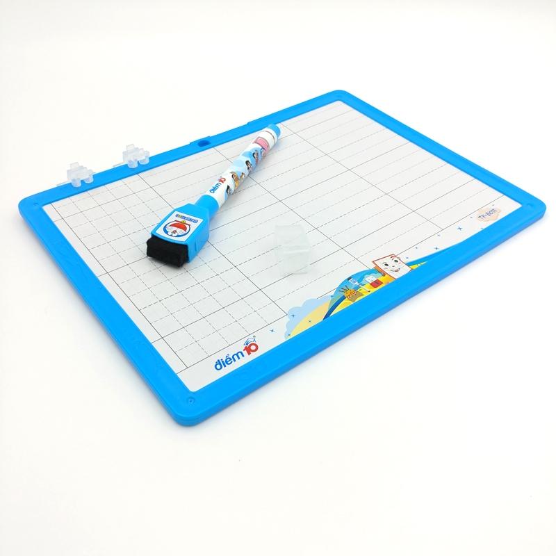 Mua tại TiktokMô tả sản phẩm Thông số kĩ thuật : Thương hiệu Điểm 10 Quy cách 1 bảng/túi - Là loại bảng bộ, 1 mặt viết phấn, 1 mặt viết lông bảng, trên bảng có kẹp