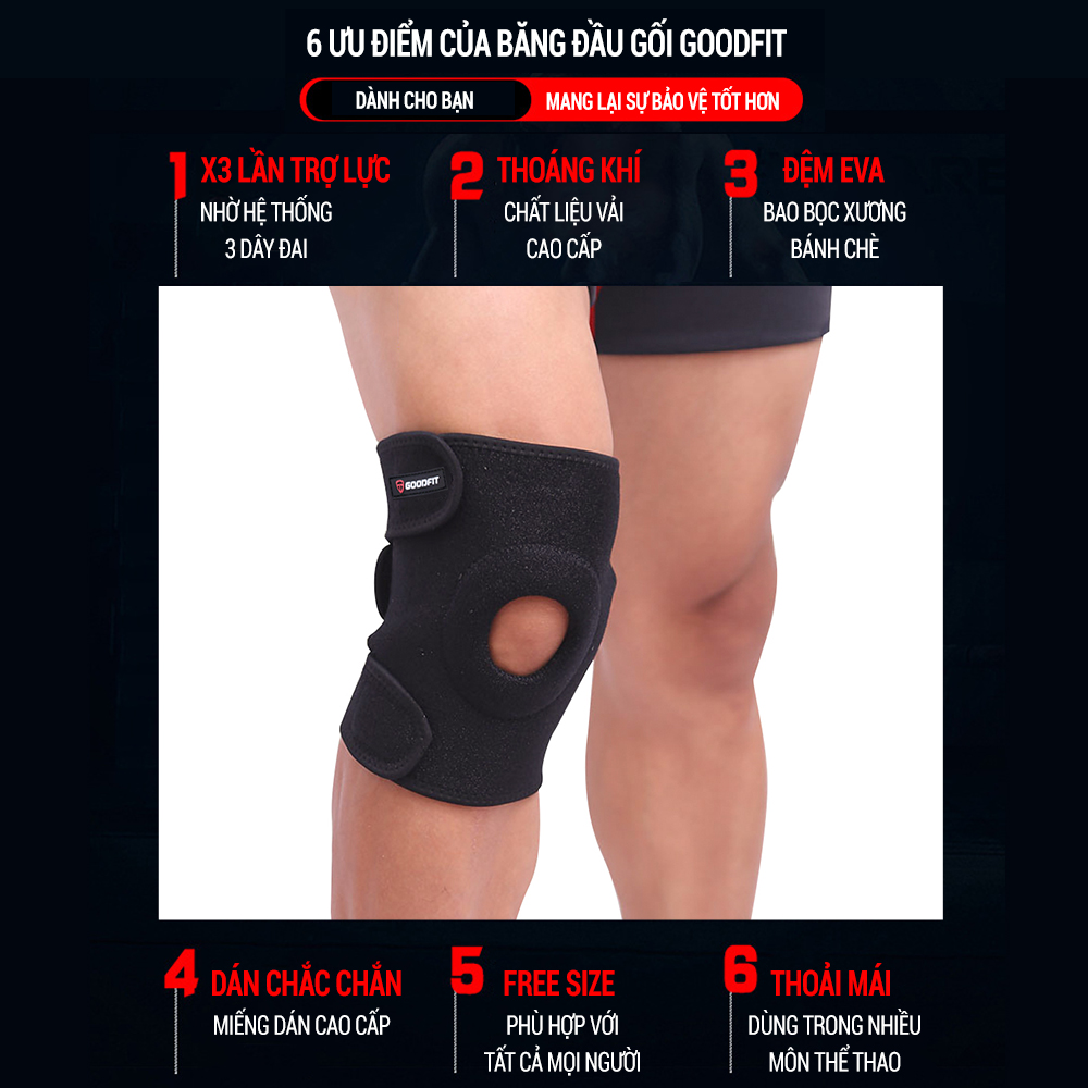 ✨Băng gối thể thao có đệm xương bánh chè GoodFit GF523K bó gối dành cho Gym, bóng đá, cầu lông