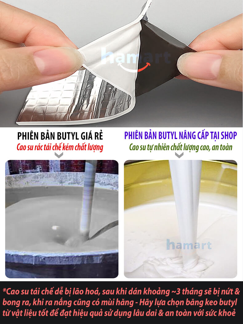- Keo cao su butyl tự nhiên chất lượng cao, tăng độ dày 1mm, độ bền chắc vượt trội so với loại băng giá rẻ chỉ dày 0.5mm cao su tái chế