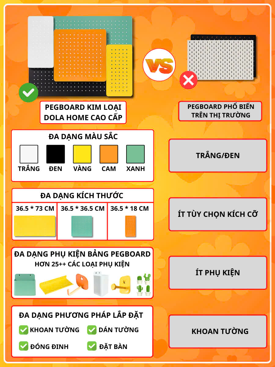 ✨Bảng lỗ Pegboard Dola Home kim loại cao cấp treo tường. Bảng treo trang trí decor nhà cửa, góc làm việc