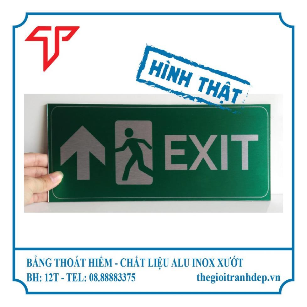 Bảng exit chỉ dẫn lỗi thoát hiểm được làm bằng alu inox mờ, tạo độ tương phản, đẹp và chắc chắn dán trực tiếp vào tường bằng keo 2 mặt