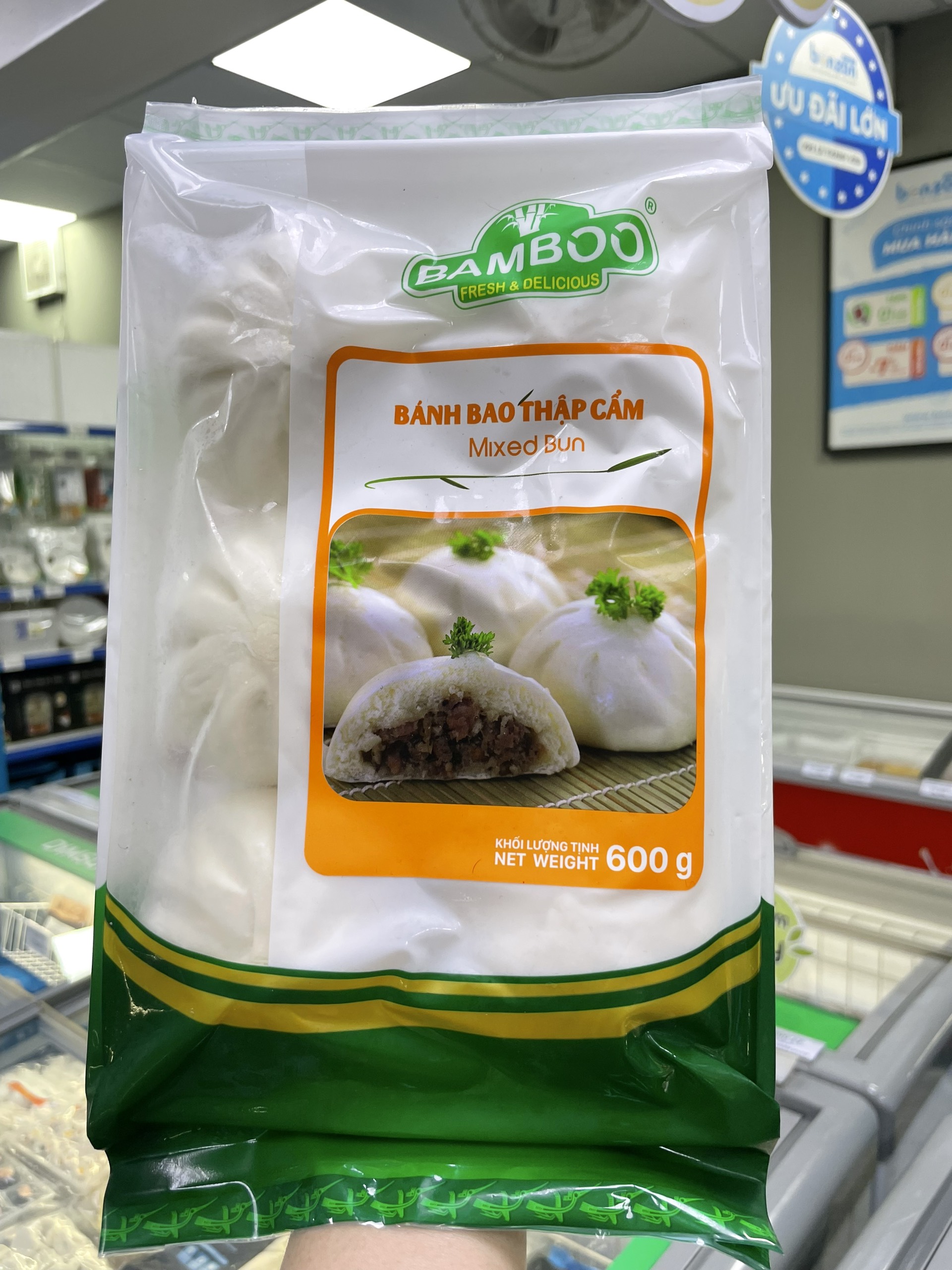 Mua tại TiktokVới sản phẩm tươi sống, trọng lượng thực tế có thể chênh lệch khoảng 10%. ĐỊNH LƯỢNG: 600gr/gói ( 6 cái ) THÀNH PHẦN: Bột mì (27%), thịt heo (17%), mỡ heo, củ sắn, nấm mèo, hành tím, lạp xưởng, trứng muối, gia vị (muối, tiêu, đường), men bánh bao, bột năng HƯỚNG DẪN CHẾ BIẾN: - Không rã đông - Hấp ở nhiệt độ 100oC, 6 - 7 phút BẢO QUẢN: - Bảo quản trong ngăn đá tủ lạnh hoặc ở nhiệt độ -18oC - Không đông lại sau khi rã đông HSD: 12 tháng
