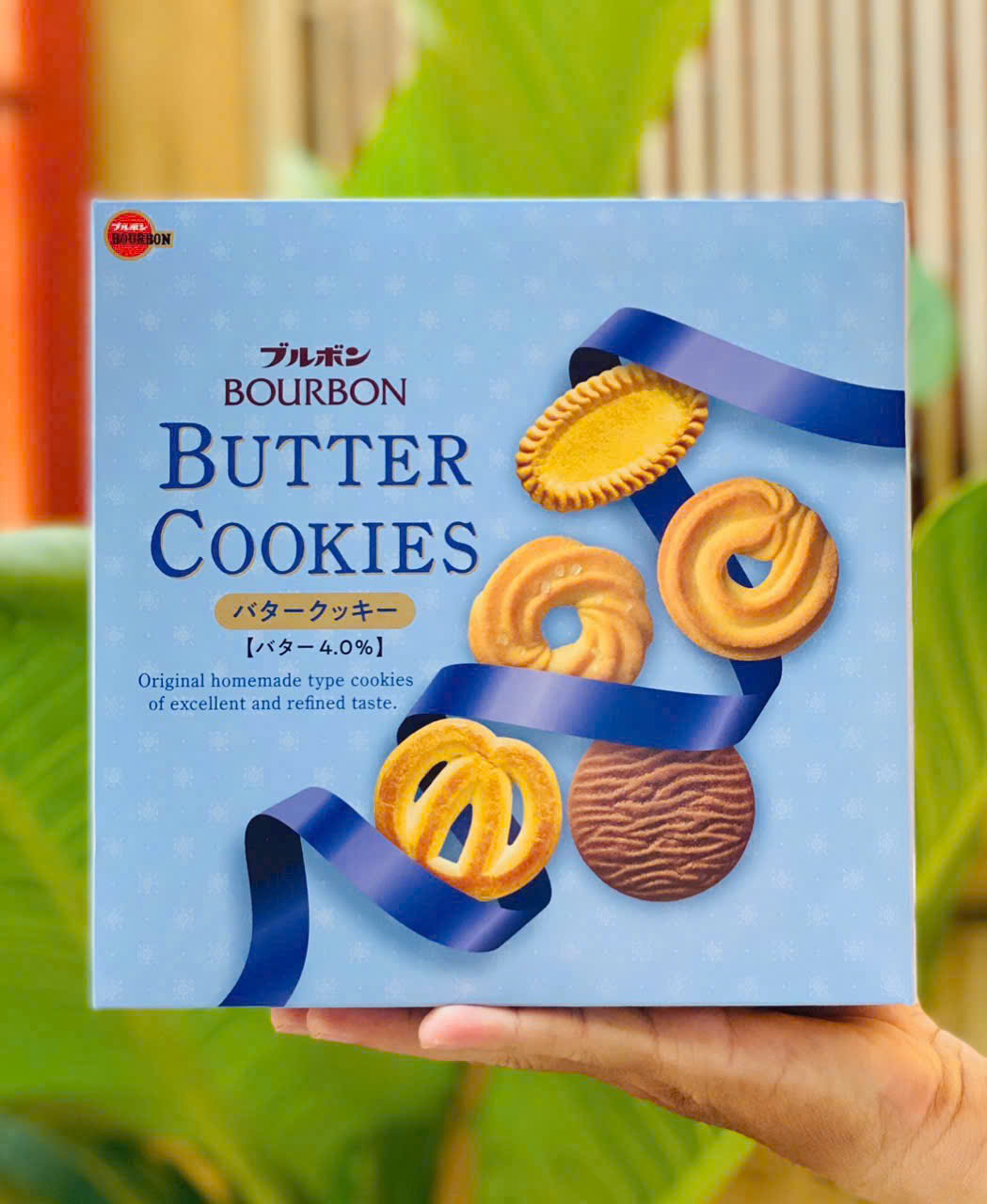 Bánh quy bơ Bourbon là dòng bánh quy bơ truyền thống cao cấp của Nhật Bản. Bánh có sự kết hợp của nhiều loại hương vị khác nhau như: Chocolate, bơ, crepe, hạnh nhân, papira…trên nền