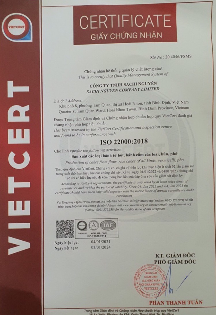 Bánh tráng ruốc biển nướng sẵn SACHI xốp, giòn rụm, thơm ruốc biển, được sản xuất trên dây chuyền hiện đại khép kín, bánh nướng bằng điện vàng đều 2 mặt, bao bì hút chân không đảm bảo an toàn vệ sinh thực phẩm. Đạt chứng nhận ISO 22000, OCOP 4 sao, các sản phẩm đã xuất khẩu đến thị trường Mỹ, Canada, Đài Loan,...