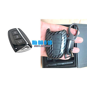 Ốp chìa khóa carbon, các bon cao cấp, bọc, bảo vệ chìa khóa kèm móc đeo inox cho xe Hyundai Santafe 2021 mẫu mới bên trong bọc cao su mềm, tránh va đập, bảo vệ