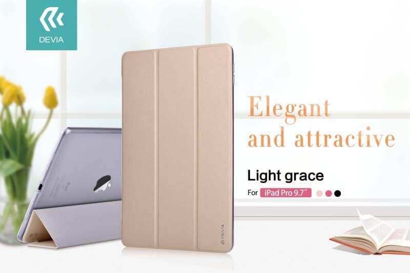 Bao da Devia Light grace dành cho aple ipaad 9.7 inch Chất liệu: PC + PU · Hỗ trợ gấp; · Vỏ sau bằng PC, hiển thị màu thiết bị gốc, chống va chạm, chống