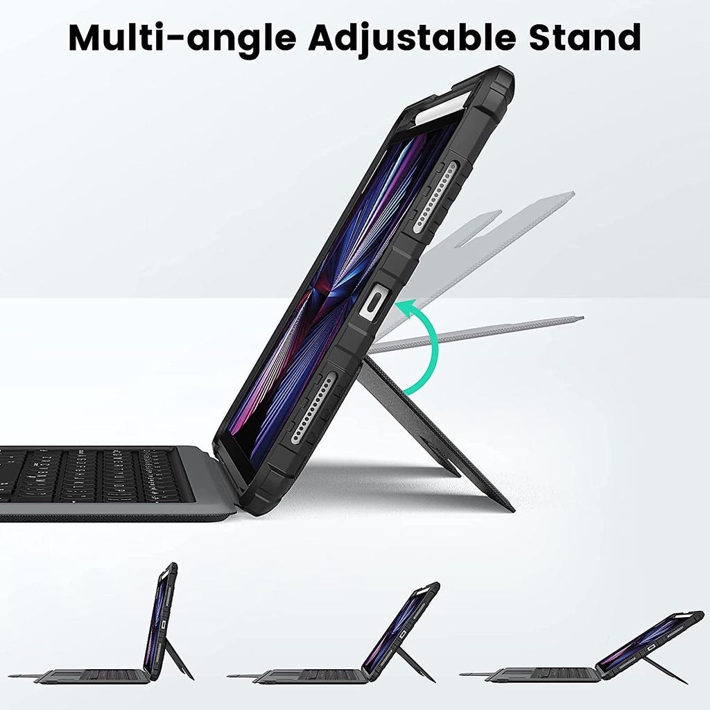 Bumper Combo Keyboard Case là hộp đựng bàn phím đa chức năng dành riêng cho iPad Pro, có giá đỡ có thể điều chỉnh, bàn phím có thể tháo rời và bàn di chuột giúp thuận tiện khi nhập, xem, đọc và phác thảo. Đồng thời cho phép bạn tận hưởng trải nghiệm hoạt động linh hoạt. Vỏ chống rơi cấp quân sự được sử dụng bao bọc chặt chẽ xung quanh các cạnh của iPad, cung cấp khả năng bảo vệ toàn bộ xung quanh. Thiết kế nắp trượt máy ảnh đã được cấp bằng sáng chế giúp bảo vệ máy ảnh của iPad khỏi mài mòn và trầy xước một cách hiệu quả. Chất liệu vải PU ngắn gọn và tinh tế hòa quyện với tính thẩm mỹ của iPad, một sự tích hợp hoàn hảo của nghệ thuật và công nghệ.