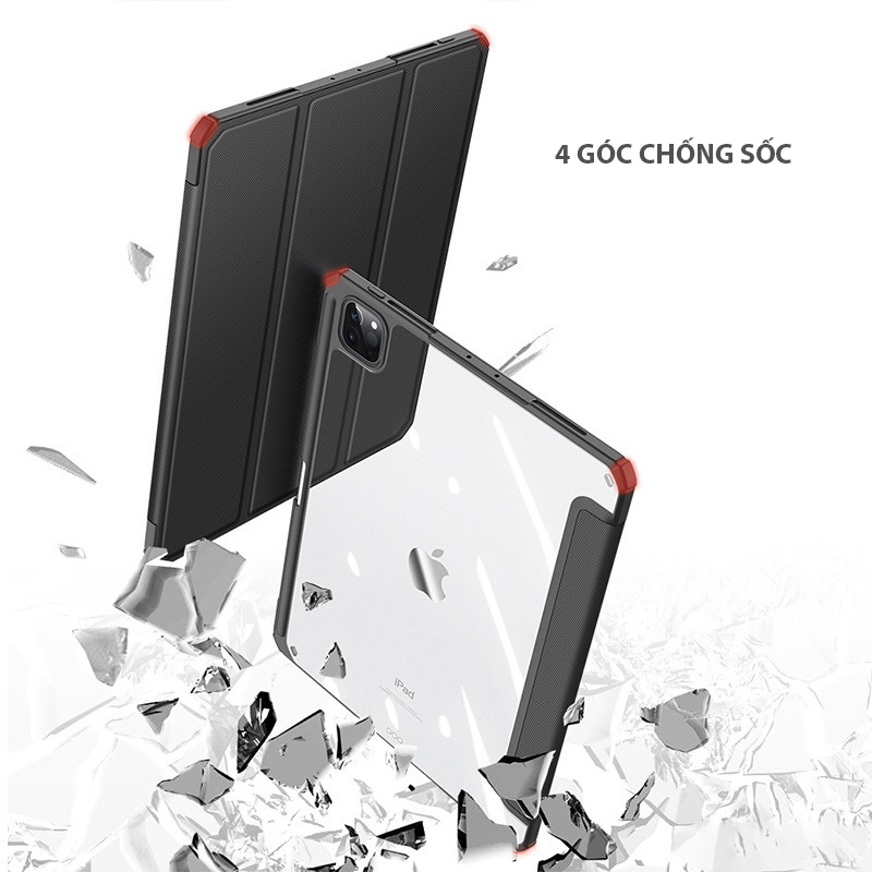 Bao Da iPad Có Giá Đỡ Gập Thông Minh Chống Sốc, Tự Tắt Mở Màn Hình, Hỗ Trợ Apple Pencil – Viền TPU, Mặt Lưng Trong Suốt Cao Cấp Bao da iPad thế hệ mới