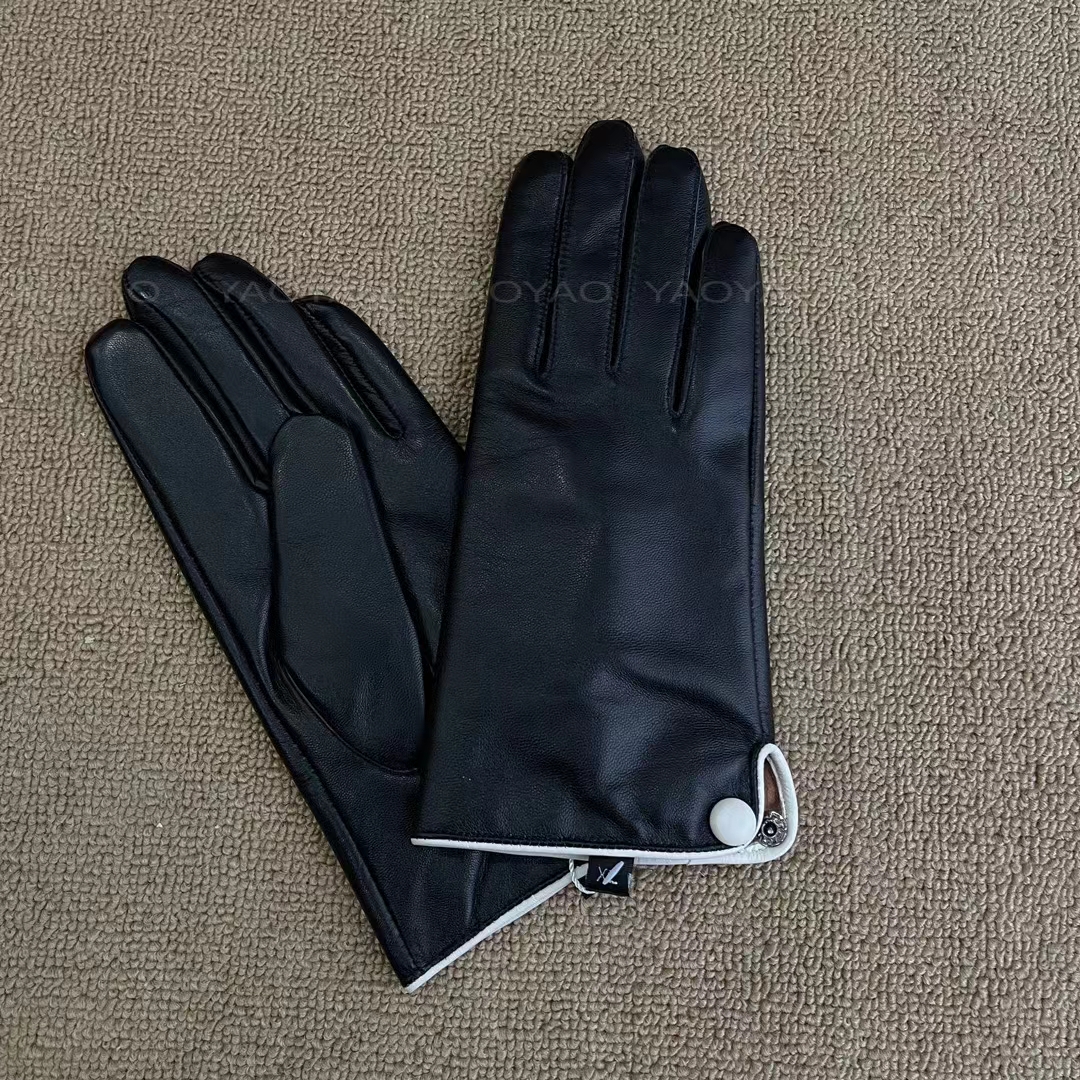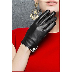 Găng tay nữ da cừu cúc trắng – BHY9748 Lót lông, cán gió, chống nước, cám ứng điện thoại...