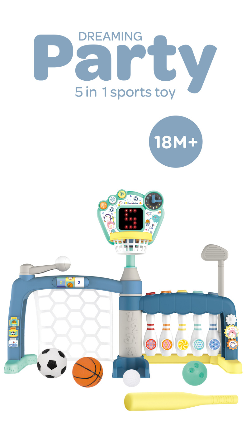 Bộ đồ chơi mô phỏng vận động siêu vui tích hợp 3 môn: bóng đá, bóng rổ và golf mini, giúp bé: Rèn thể lực và kỹ năng phối hợp nhóm. Phát triển phản xạ
