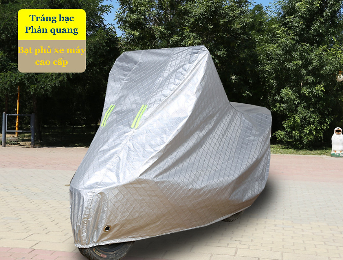 BẠT PHỦ XE MÁY PHẢN QUANG TRÁNG NHÔM CÁCH NHIỆT CAO CẤP, BẠT PHỦ XE MÁY BỐN MÙA - HÀNG CHÍNH HÃNG Bạt phủ bạc trùm che chắn nắng xe máy vải cao cấp phản