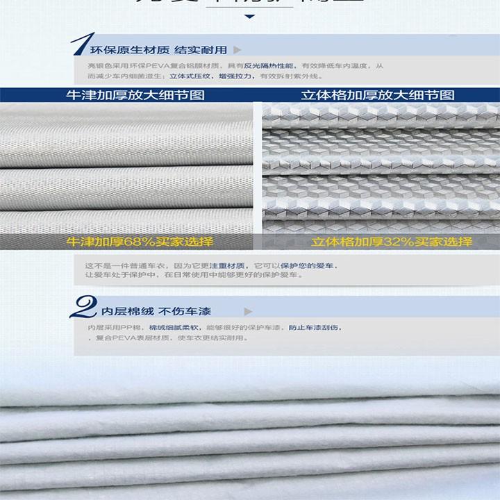 Bạt phủ xe ô tô 7 chỗ 3 lớp tráng nhôm cách nhiệt, chống nóng, chống thấm, chống bụi bẩn - Bạt phủ xe có mặt ngoài là chất liệu vải PEVA tráng nhôm phản