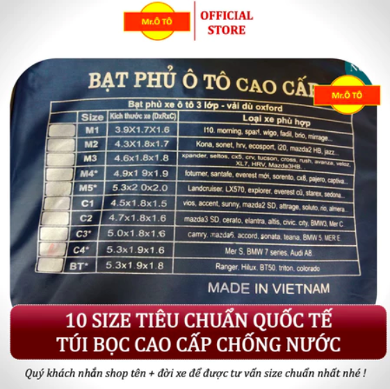 ✨Bạt phủ ô tô vải dù Oxford cao cấp - Mr Ô Tô 10 size độc quyền - Bảo vệ xe tuyệt đối - Bảo hành 2 năm.