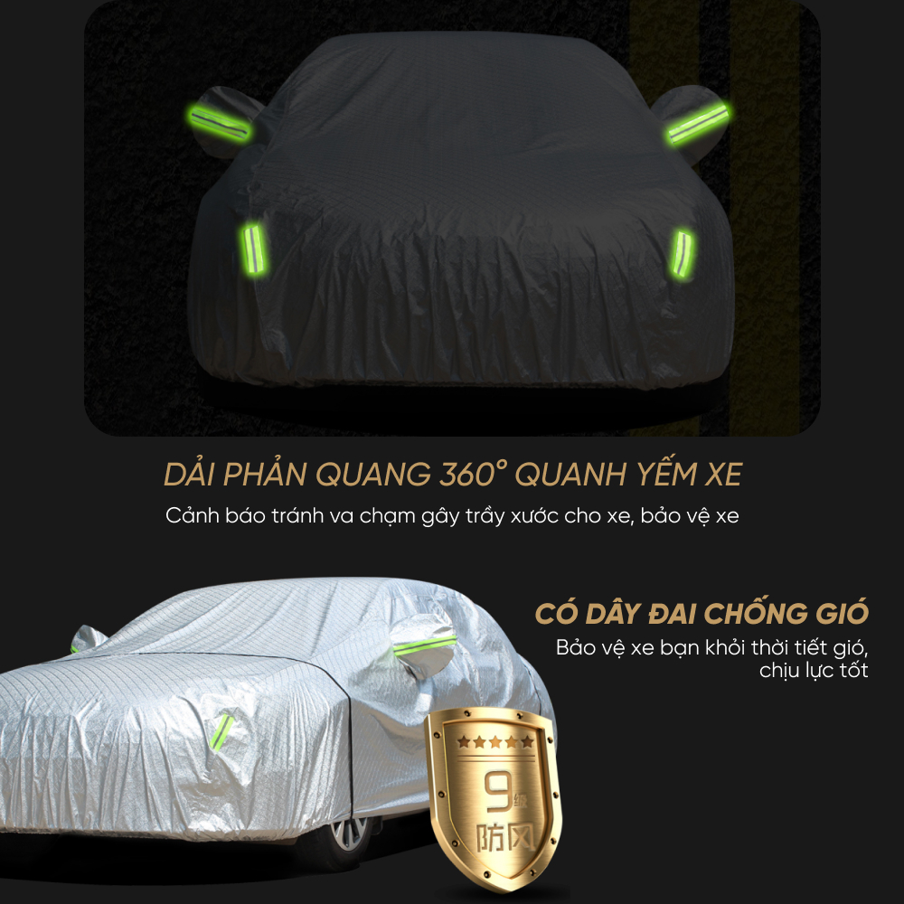 Bạt Che Phủ Xe ô tô 4 Chỗ CAO CẤP chỗ 3 lớp chống xước, chống nắng Nóng, chống cháy, Chống Trộm Gương --> Tên Sản Phẩm: Bạt Che Phủ Xe ô tô 4 Chỗ