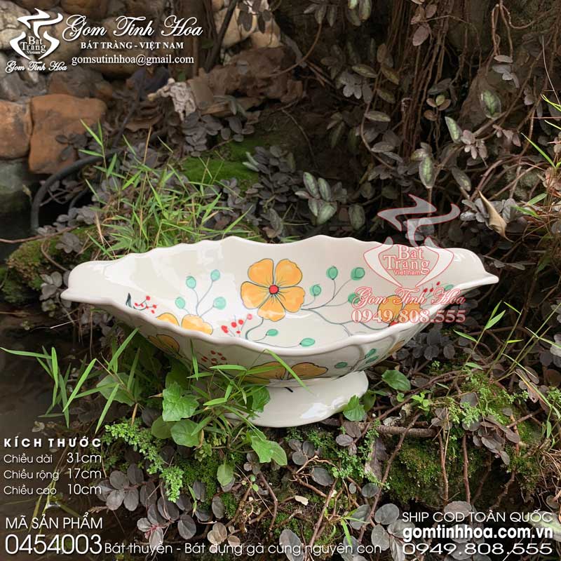 Bát thuyền gốm sứ - Bát bày gà cúng gốm sứ Bát Tràng cao cấp.