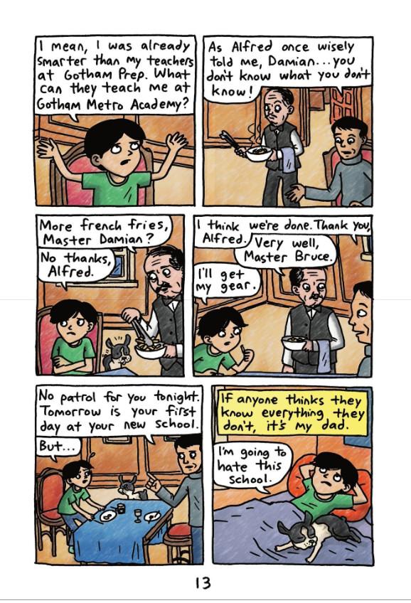 To Damian Wayne, there is nothing more important than protecting the streets of Gotham City as Robin. But when he makes a critical mistake while out on patrol, Damian finds himself benched. And what's more, Damian's dad, Bruce W Batman--decides that starting over in a new school will be just the distraction Damian needs from his superhero routine.