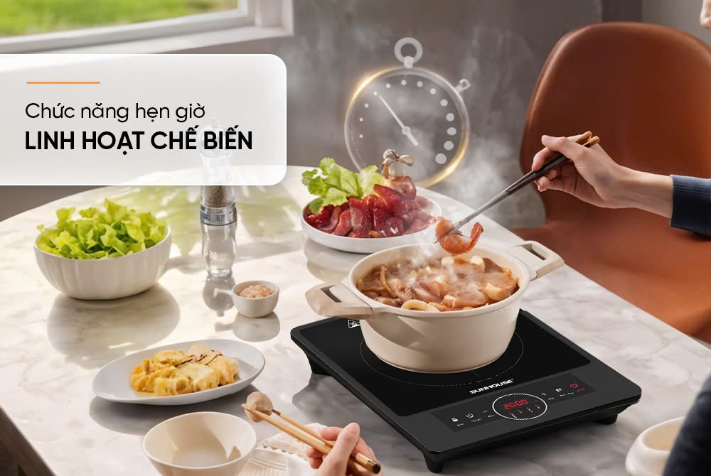 Hẹn giờ tối đa 3h, linh hoạt chế biến