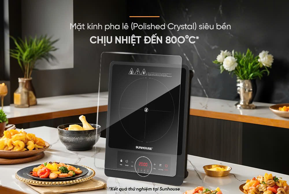Thiết kế sang trọng, hiện đại Bếp Hồng Ngoại Cảm Ứng Sunhouse SHD6005 thiết kế phần mặt bếp hồng ngoại bằng kính cường lực siêu bền, chống xước, chịu được nhiệt độ lên tới 800