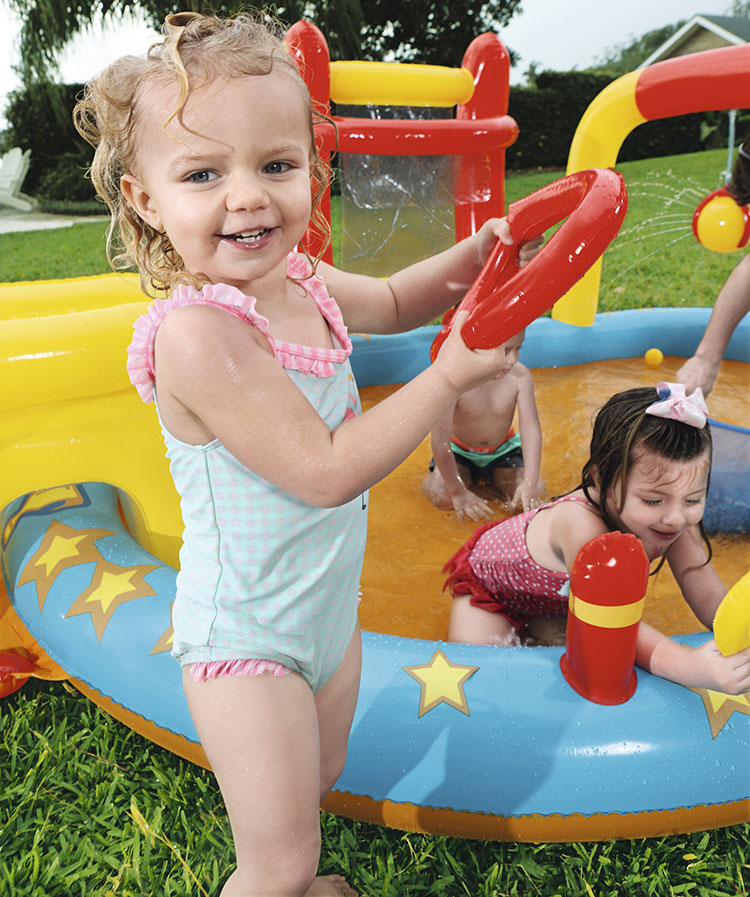 - Khi không chơi nước thì mẹ có thể đổ đầy bóng vào cho bé chơi như nhà bóng, hoặc cho các đồ chơi khác vào cho bé chơi.
