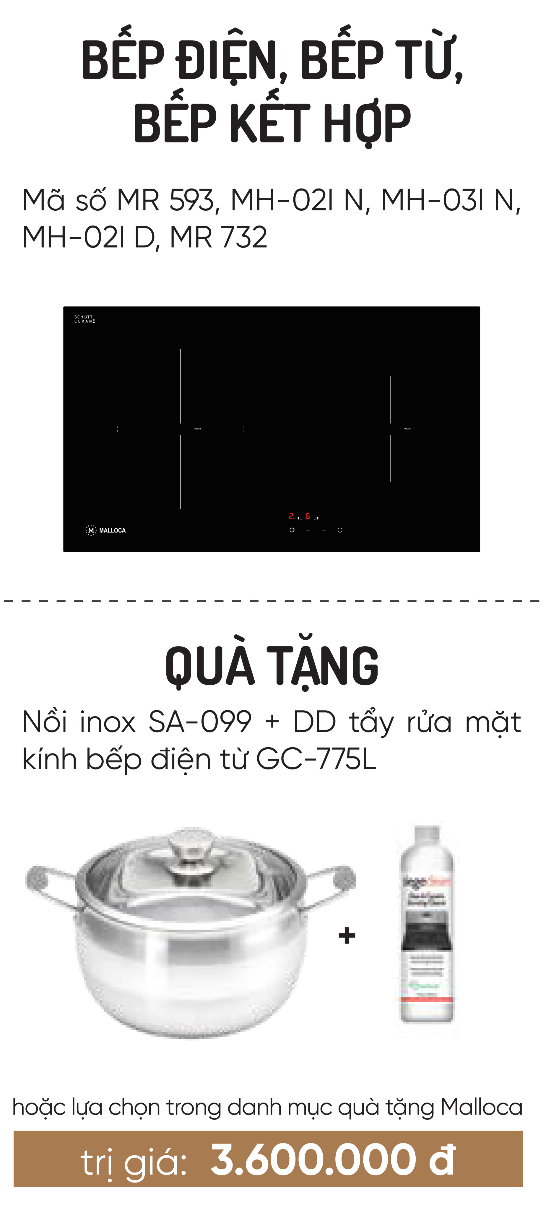 Bếp điện 2 vùng nấu Malloca MR-732 nhập khẩu nguyên chiếc từ Tây Ban Nha sở hữu thiết kế âm bàn nhỏ gọn, hiện đại. Sản phẩm có công suất cao, hai vùng nấu điện