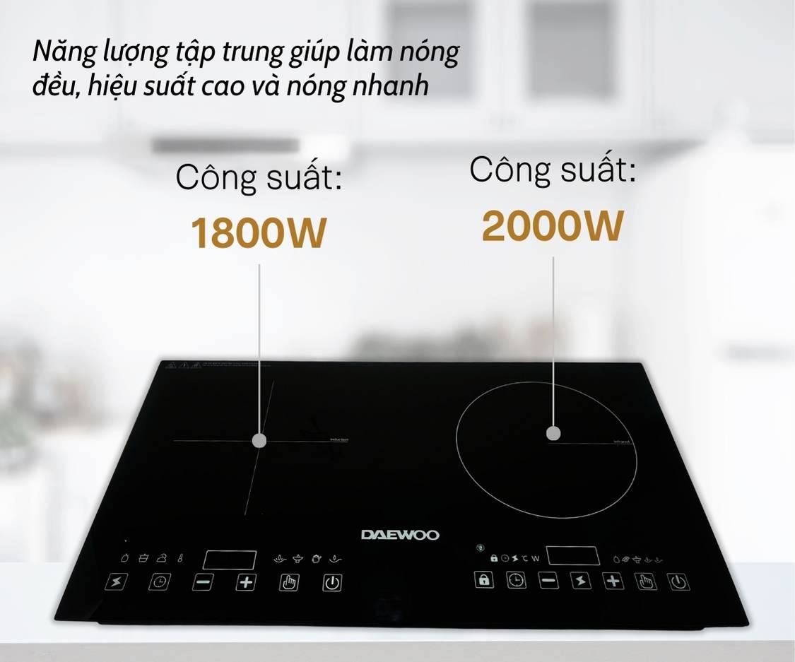 Công suất lớn 3800W: Mỗi bếp công suất 2000W và 1800W, giúp nấu ăn nhanh chóng, giữ nguyên hương vị và dinh dưỡng của món ăn.