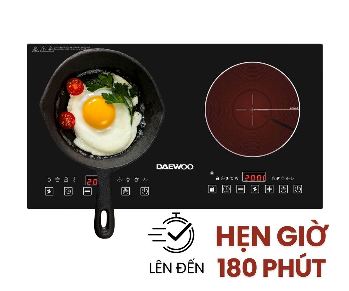 ✨Bếp Đôi Điện Từ Hồng Ngoại Daewoo DWHB-3801C, mặt kính pha lê bóng 3800W, phù hợp mọi loại nồi - Hàng chính hãng