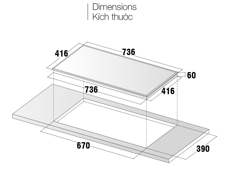 THÔNG SỐ SẢN PHẨM Mặt kính Crystal chịu lực chịu sốc nhiệt cao Hệ thống điều khiển bằng cảm ứng Slider Phím điều khiển cảm ứng độc lập dạng ẩn Cảm ứng quá nhiệt, cảnh