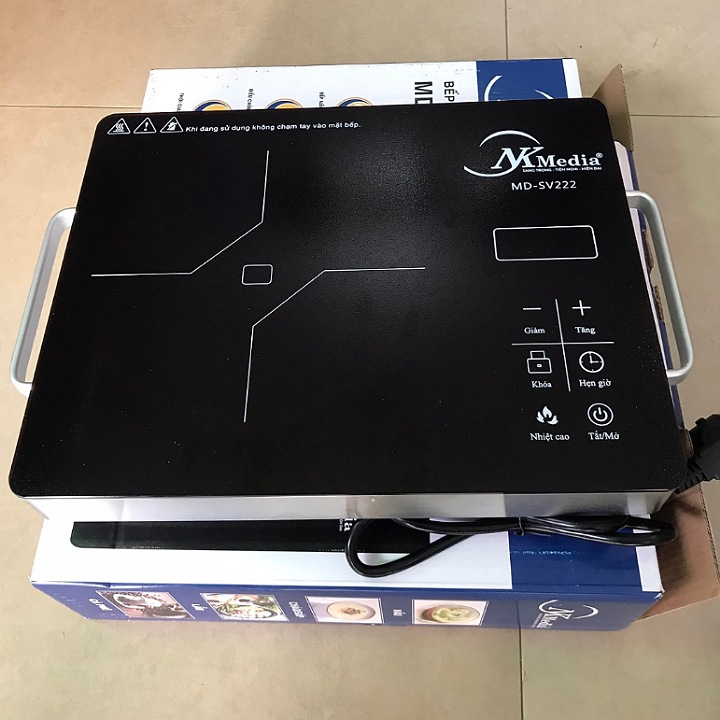 - Đa chức năng nấu nướng Bếp Hồng Ngoại Cảm Ứng NK Media MD-SV222 - Hàng Chính Hãng là một bước tiến trong ngành thiết bị nhà bếp, bởi những công dụng tuyệt vời và sự tiện lợi mà chúng mang lại cho người sử dụng. Bếp hồng ngoại hoạt động dựa vào dòng điện đốt nóng các lõi điện bên trong (cuộn dây điện trở) để tạo ra nhiệt rồi truyền đến mặt bếp, nhiệt làm nóng đáy nồi và nấu chín thức ăn. Nhờ thế, bếp hồng ngoại có thể dùng được cho tất cả các loại nồi và cũng có thể dùng để nướng thức ăn được. Bếp Hồng Ngoại Cảm Ứng NK Media MD-SV222 - Hàng Chính Hãng được tạo thành từ những chất liệu cao cấp nhất, cùng công nghệ hiện đại nhất, thân thiện với người sử dụng sẽ là lựa chọn hoàn hảo cho mọi căn bếp Việt. THIẾT KẾ THÔNG MINH – HIỆN ĐẠI – TRẺ TRUNG Thiết kế chắc chắn, an toàn khi di chuyển Bếp Hồng Ngoại Cảm Ứng NK Media MD-SV222 - Hàng Chính Hãng có kiểu dáng nhỏ gọn nhưng chắc chắn, màu đen sang trọng, bốn góc bo tròn. Đặc biệt, bếp có tay cầm cách nhiệt 2 bên giúp cho việc di chuyển khi bếp còn nóng được an toàn và dễ dàng hơn. Mặt kính siêu bền, chịu lực, chịu nhiệt Bếp Hồng Ngoại Cảm Ứng NK Media MD-SV222 - Hàng Chính Hãng làm bằng kính cường lực, chống trầy xước, chống bám bẩn. Đặc biệt, mặt bếp có khả năng chịu lực và chịu được nhiệt độ lên đến 800 độ C giúp bạn yên tâm nấu nướng. Bảng hiển thị LED cùng núm vặn và phím bấm cảm ứng nhạy bén Bếp điều chỉnh nhiệt độ bằng phím cảm ứng, dễ dàng sử dụng kể cả những người tiếp xúc lần đầu tiên. Các chức năng khác như hẹn giờ, khóa an toàn, hiển thị điện năng… được lựa chọn bằng phím bấm cảm ứng trên mặt bếp. Quạt gió tăng tuổi thọ sản phẩm Quạt gió tốc độ cao được trang bị dưới mặt bếp và bên hông bếp giúp tản nhiệt đều, hạ nhiệt nhanh nhưng không tạt hơi nóng vào người sử dụng. Sản phẩm có tuổi thọ cao, mặt kính bền, linh kiện bền… đều được quạt gió góp phần hỗ trợ. ĐA CHỨC NĂNG NẤU NƯỚNG – ĐÁP ỨNG MỌI NHU CẦU CỦA GIA ĐÌNH Công suất lớn, 5 chế độ nấu linh hoạt Bếp có công suất 2000W cho khả năng nấu nhanh, giúp tiết kiệm tối đa điện năng và thời gian nấu nướng. Sản phẩm phục vụ 5 chế độ nấu tự động bao gồm nướng, chiên, nấu lẩu, nấu súp và nấu nước. Đặc biệt, chức năng nướng trực tiếp mang đến sự tiện lợi tối đa khi có thể làm chín mọi thực phẩm như thịt, cá, hải sản… Dễ dàng sử dụng & vệ sinh Bếp điều chỉnh nhiệt độ bằng núm xoay đơn giản, dễ dàng sử dụng kể cả những người tiếp xúc lần đầu tiên. Lưu ý bạn chỉ có thể điều chỉnh nhiệt độ/công suất nấu cho chế độ nấu lẩu, nướng, chiên còn chế độ nấu súp, đun nước thì bạn không thể chỉnh được. Chế độ hẹn giờ/cài đặt trước tiện lợi Bếp Hồng Ngoại Cảm Ứng NK Media MD-SV222 - Hàng Chính Hãng có chế độ hẹn giờ bật trước 12 giờ và cài đặt tắt trước 4 giờ giúp người dùng tiết kiệm được thời gian trông coi. Hiển thị điện năng tiêu thụ Trong suốt quá trình nấu, chạm phím “Điện năng” 1 lần, màn hình sẽ cho thấy mức điện năng tiêu thụ. Ấn phím “Điện năng” 2 lần, màn hình hiển thị điện áp hiện tại theo vôn. An toàn trong quá trình sử dụng Bếp Hồng Ngoại Cảm Ứng NK Media MD-SV222 - Hàng Chính Hãng trang bị khóa trẻ em an toàn, hạn chế nguy cơ bị bỏng nhiệt. Đèn báo mặt bếp còn nóng tránh cho người dùng các nguy cơ bỏng do tiếp xúc với bề mặt bếp ngay sau khi nấu. Tự động ngắt khi quá nhiệt Bếp được trang bị thiết bị bảo vệ quá nhiệt, nếu nồi chảo quá nóng (vượt mức an toàn), bếp sẽ tự động ngắt nguồn. Bạn chỉ cần để yên và chờ một lúc cho bếp nguội bớt rồi sẽ hoạt động lại bình thường. Không bức xạ nhiệt Sản phẩm làm nóng nhưng không bức xạ nhiệt, bảo đảm an toàn về nhiệt và điện cho người sử dụng. Sử dụng được cho tất cả các loại nồi Bếp không kén chọn loại nồi chuyên dụng: nồi inox, nhôm, sứ, thủy tinh… giúp tận dụng tối đa các loại nồi sẵn có, tiết kiệm tiền bạc và không gian lưu trữ cho nhà bếp. Thông số kỹ thuật