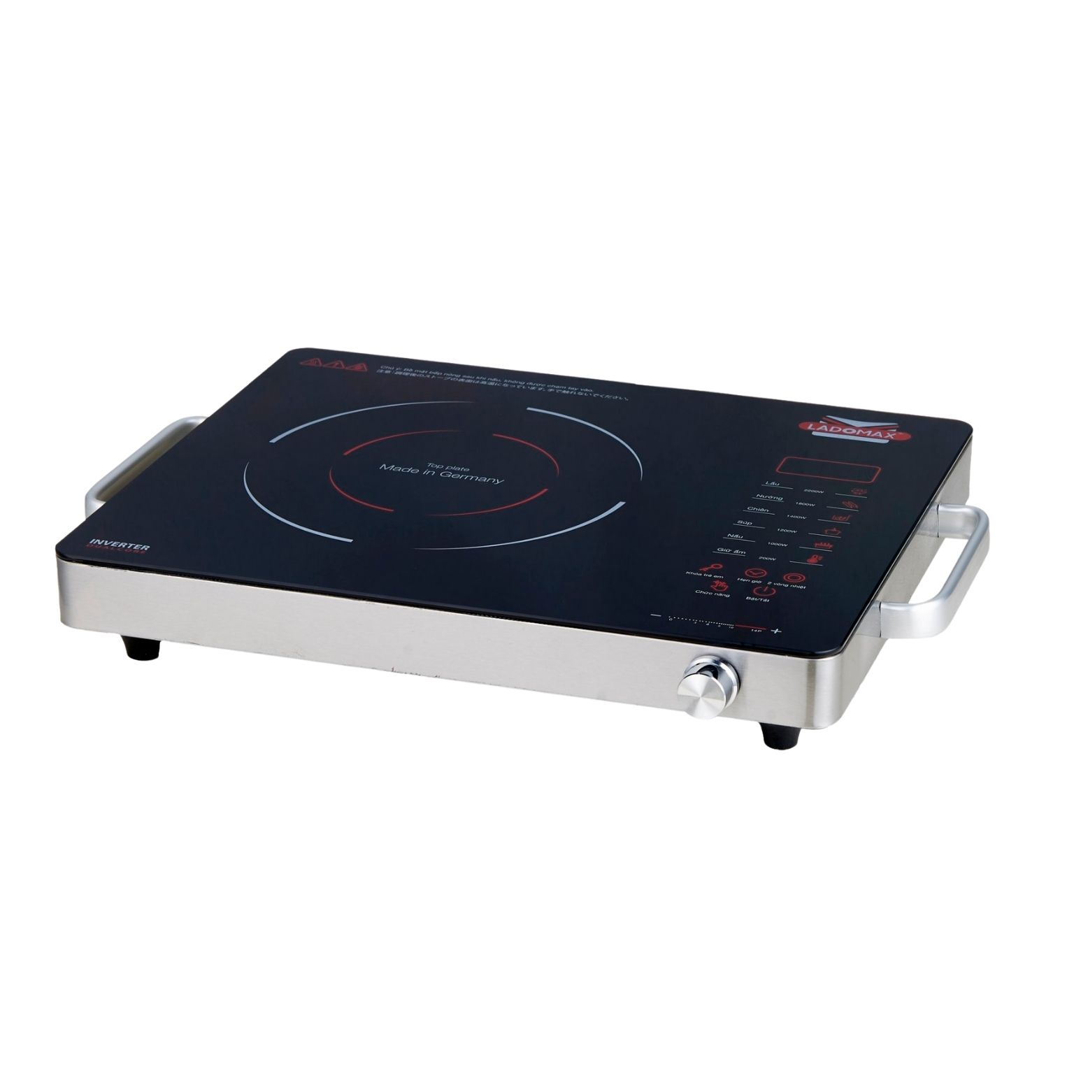 Mô Tả Sản Phẩm CÔNG SUẤT CỰC MẠNH 2200W, ĐIỀU CHỈNH NHIỆT ĐỘ BẰNG CẢM ỨNG VÀ NÚM XOAY, KHÔNG KÉN NỒI,DÙNG CHO MỌI LOẠI NỒI,CÓ THỂ NƯỚNG TRỰC TIẾP LÊN BẾP MẶT KÍNH GERMANY