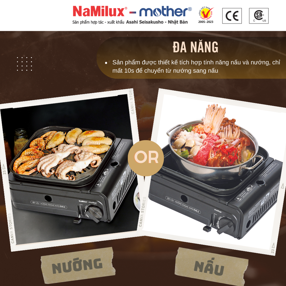 Bếp lẩu - nướng đa năng Namilux EVS-2 - Hàng chính hãng, phù hợp cho nhà hàng lẩu nướng, hộ gia đình Sản phẩm có 2 phân loại mã hàng - GS3323PF: Gồm có bếp,