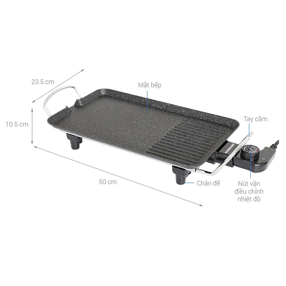 Đặc điểm nổi bật: Tốc độ nướng nhanh, tiết kiệm điện năng - Mặt bếp lớn, làm chín nhiều thực phẩm cùng lúc - Bề mặt phủ chống dính 2 lớp siêu bền, dễ dàng