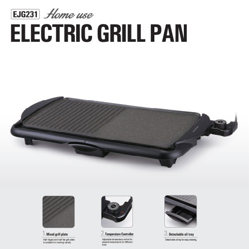 Bếp nướng điện Electric Grill EJG231, Hàng chính hãng, 2000W, bề mặt chống dính, 5 mức nhiệt, có lỗ thoát dầu - JoyMall