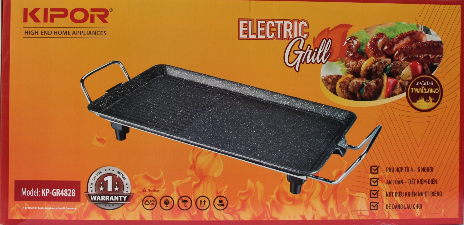 Bếp Nướng Điện Lớn (48x28cm) Kipor KP-GR4828 - Chính Hãng ĐẶC ĐIỂM NỔI BẬT - Bề mặt phủ chống dính đá hoa cương Whitford – USA siêu bền, kháng khuẩn - Tay cầm cách nhiệt