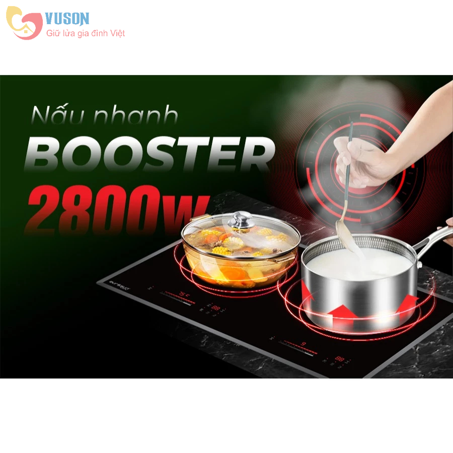 THÔNG SỐ KỸ THUẬT: – Điện áp 220V/50Hz – Trái 2000W/Booster 2300W – Phải 2000W/Booster 2300W – Kích thước (dài x rộng x cao): 750x430x60mm – Kích thước khoét lỗ: 695x395mm TÍNH NĂNG SẢN PHẨM: