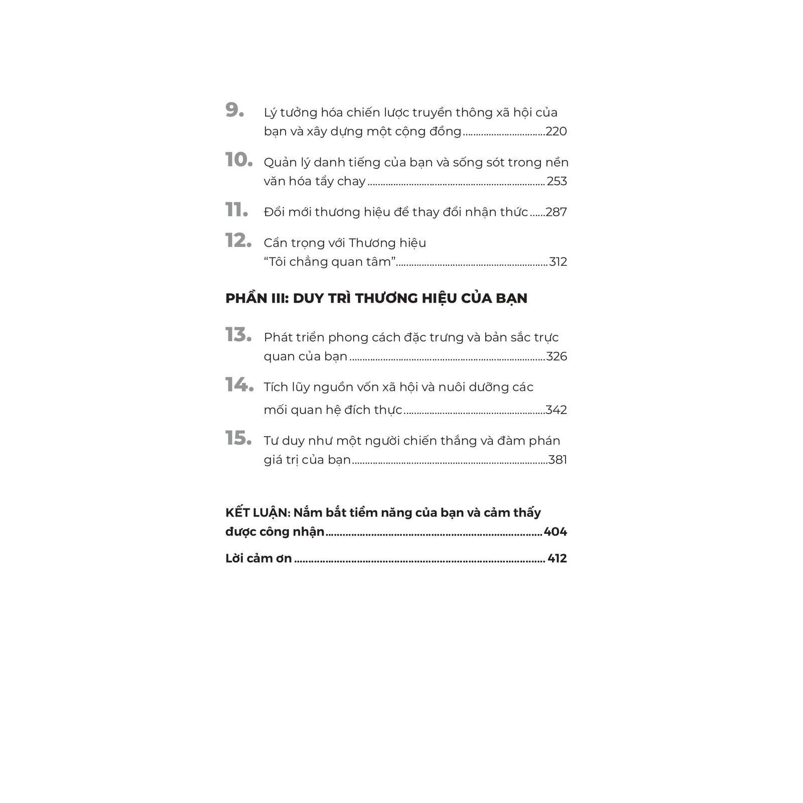 Bất kể bạn đang ở phần nào kể trên, cuốn sách cũng này sẽ cung cấp cho bạn những công cụ cần thiết để xây dựng, giao tiếp hoặc định hình lại thương hiệu cá nhân, mọi thứ đều nằm trong tầm tay bạn. Bí quyết quản lý danh tiếng trong thời đại số sẽ cung cấp canvas, bút vẽ và sơn cho bạn, nhưng kiệt tác bạn tạo ra phụ thuộc vào chính bạn.