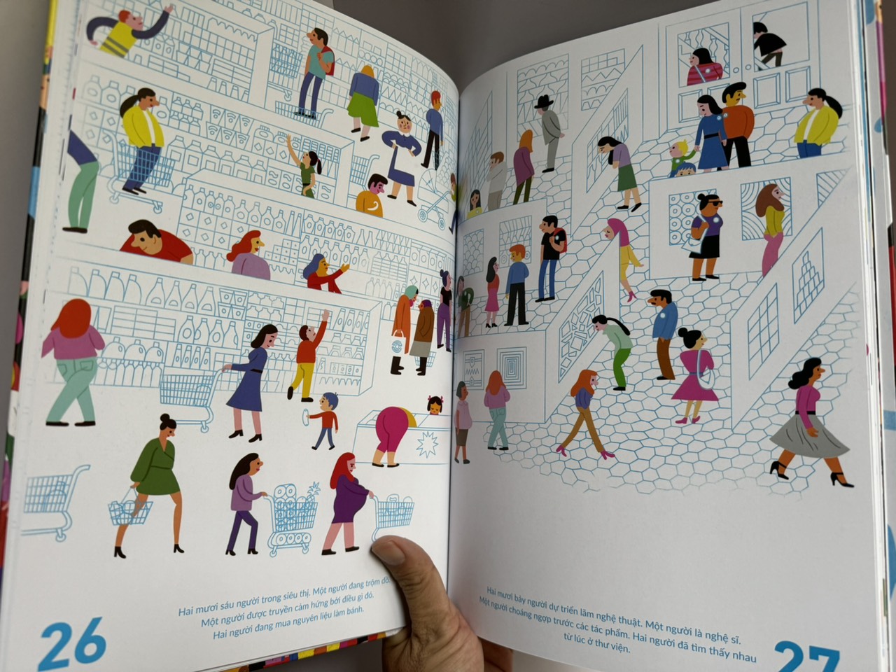 Trong tay bạn lúc này là cuốn sách tranh đặc biệt với câu chuyện về 7.8 tỉ người trên hành tinh. Bạn có thể dùng sách để đếm số người, luyện mắt tinh và nếu đủ tinh ý, bạn sẽ khám phá ra vô số bí mật ...