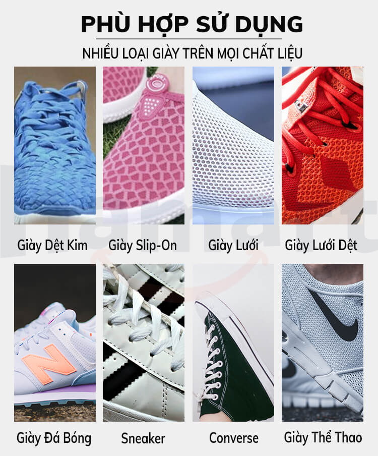 Đặc điểm nổi bật: - Làm sạch các vết bẩn trên giày dép bằng công nghệ nano mới an toàn - Để lại mùi thơm tự nhiên sau khi sử dụng - Sử dụng được