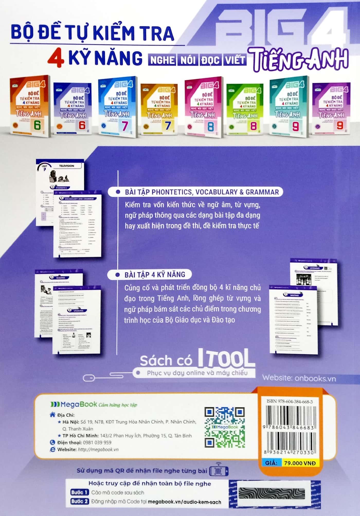 Big 4 bộ đề tự kiểm tra 4 kỹ năng Nghe - Nói - Đọc - Viết TA (cơ bản và nâng cao) lớp 7 tập 1