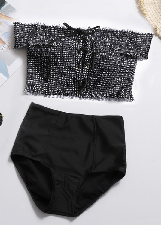 ✨Bikini 2 mảnh áo vai trần, quần cạp cao qua rốn, phong cách đơn giản, dễ mặc | KT064