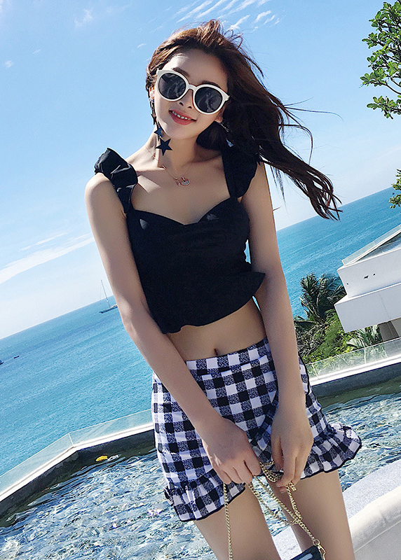 ✨Bikini 2 mảnh, đồ bơi nữ chất bơi lycra lạnh cao cấp, dáng áo croptop bèo, quần váy cách điệu nữ tính, sẵn gọng đệm | KT014nu